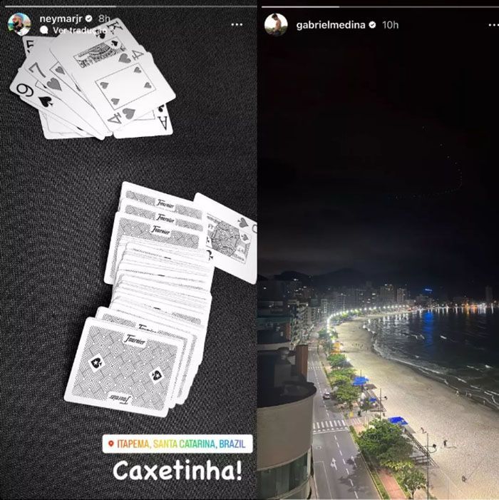 O jogador do PSG desembarcou em Itapema e foi para sua cobertura, onde fez uma noite de jogos na noite de quarta (14) ao lado de amigos, como o campeão mundial de surfe Gabriel Medina.